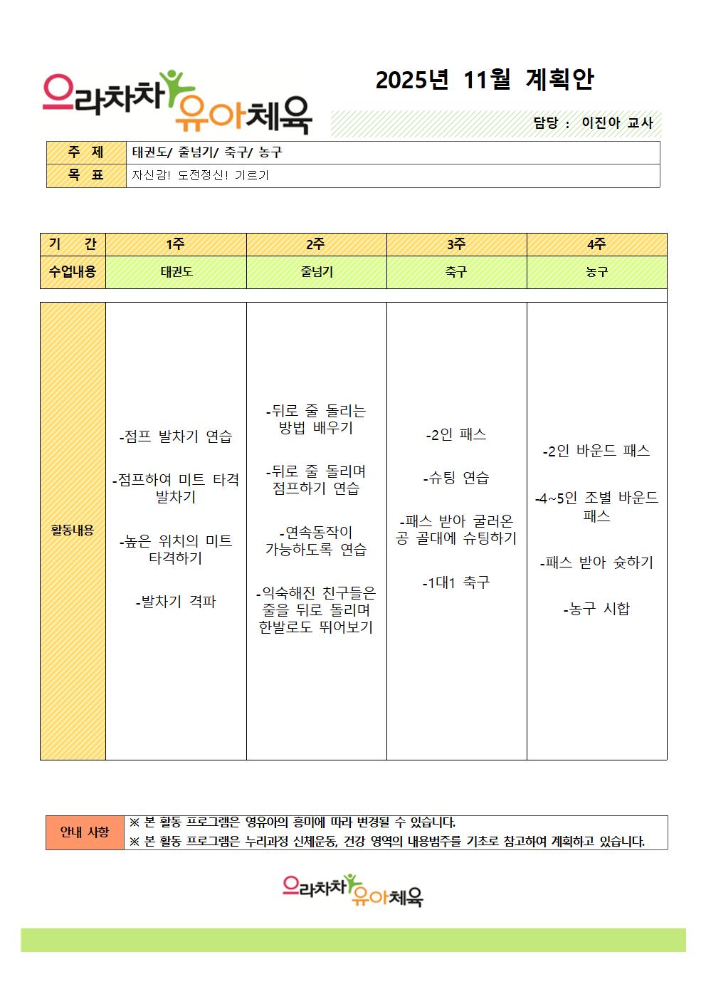 11월 체육 특성화 계획안